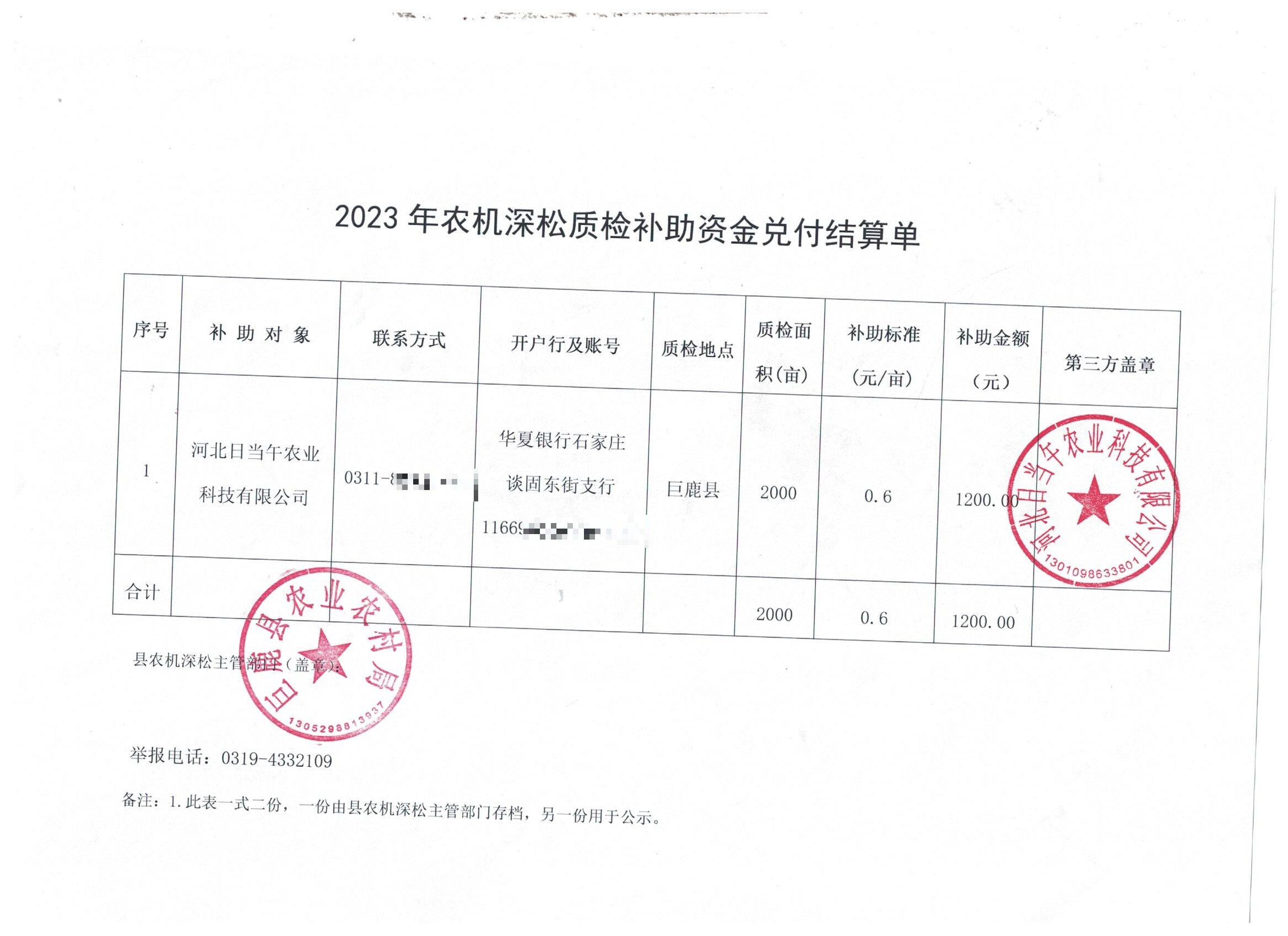 巨鹿县农业农村局关于2023年农机深松作业补贴质检补助结算单的公示
